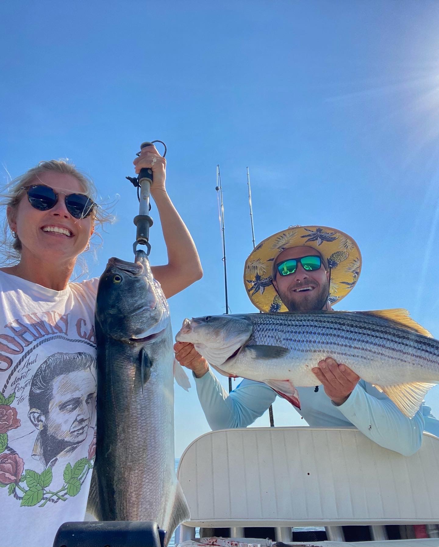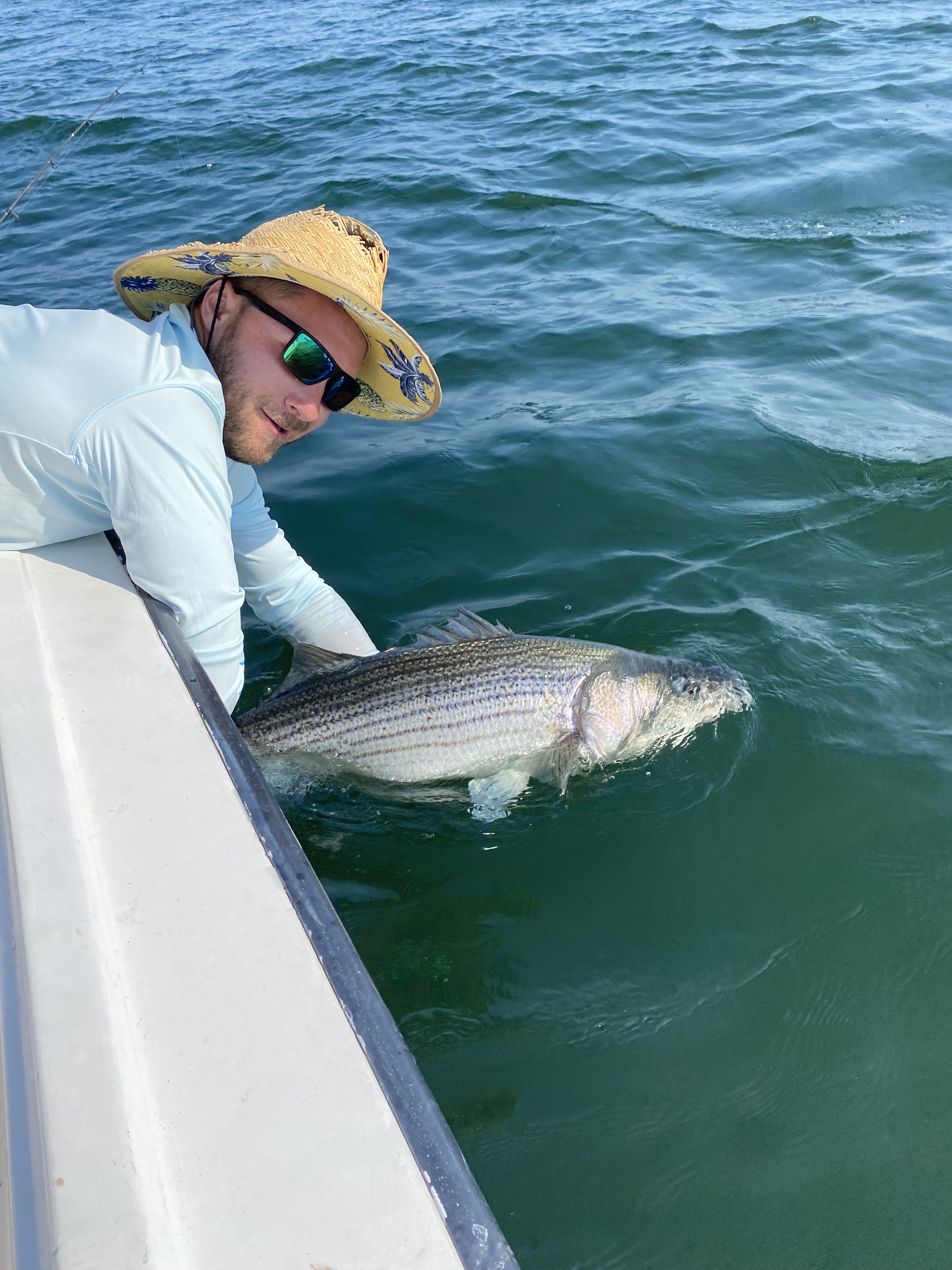 The season followed pretty typical trends: fish showing up in the inner islands, rivers, shorelines and estuaries etc., thick in mid April, with most of the May fishing centered in these areas. Late May into June we begin searching for fish out in deep, open water, generally around bunker schools (think: big meals big fish). Both tactics produced pretty well, but I must say once the open water bite turned on, the shallow water Inshore bite seemed to really dry up (say around May 20th). It’s amazing how the fish can, at times, be so keyed in on certain areas even for weeks. Bait just seems to hold in a given spot and the fish have no impetus to leave. Starting around June 10th, a lot of the best fish were coming at night using bait, as opposed to the more visual topwater fishing that was working really well the prior few weeks. But, there are many ways to skin a cat and everyone has their own favorite tactic.